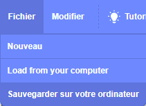 Par contre, dans le menu "Fichier", il est possible de sauvegarder sur son ordinateur ou de charger depuis son ordinateur un programme !