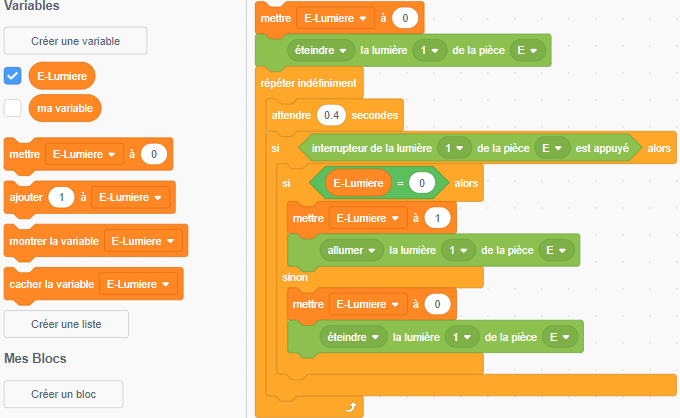 • A partir de l'observation de ces valeurs, faite de sorte que un appuie sur l'interrupteur change l'état de la lumière en fonction de la valeur renvoyée par le capteur de lumière de la pièce.