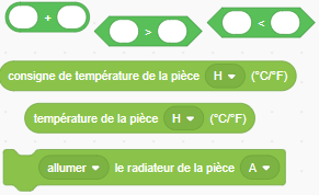 Utilisez la consigne de température de confort programmée sur le thermostat de la pièce pour faire ce programme : nommons la <consigne>.