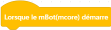 • "Bluetooth" ou "2.4GHz" (= radio) : pour piloter le robot depuis l'interface de mBlock. Le programme débute par: un bloc évènementiel comme . Notez alors deux choses :